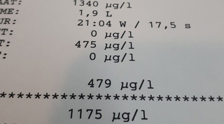 De man blies op het bureau 1175 ug/L. Vanaf 220 ug/L is men strafbaar. De bestuurder heeft zijn rijbewijs op het bureau achter moeten laten en kan zich gaan opmaken voor een verantwoording bij de rechter.